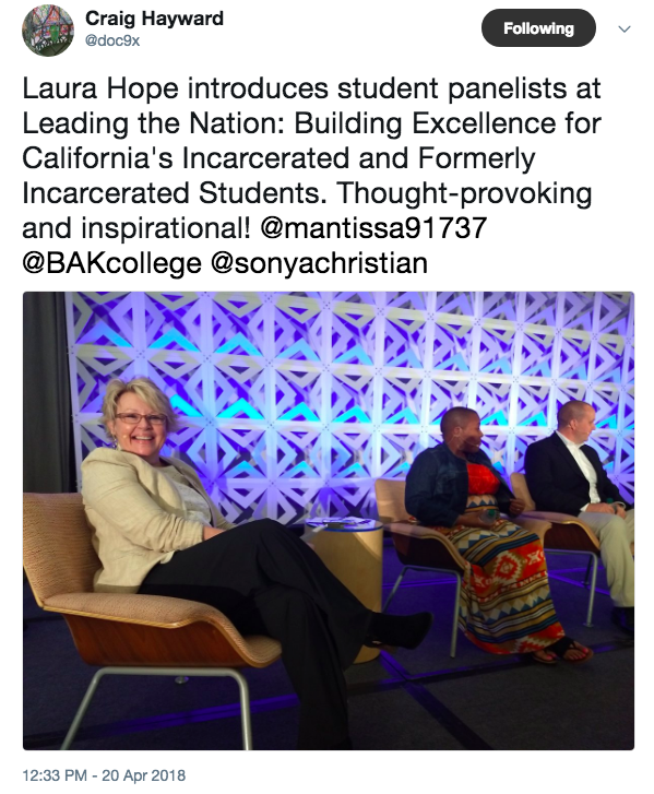 Craig Hayward Tweet (with Laura Hope and formerly incarcerated students)(1)