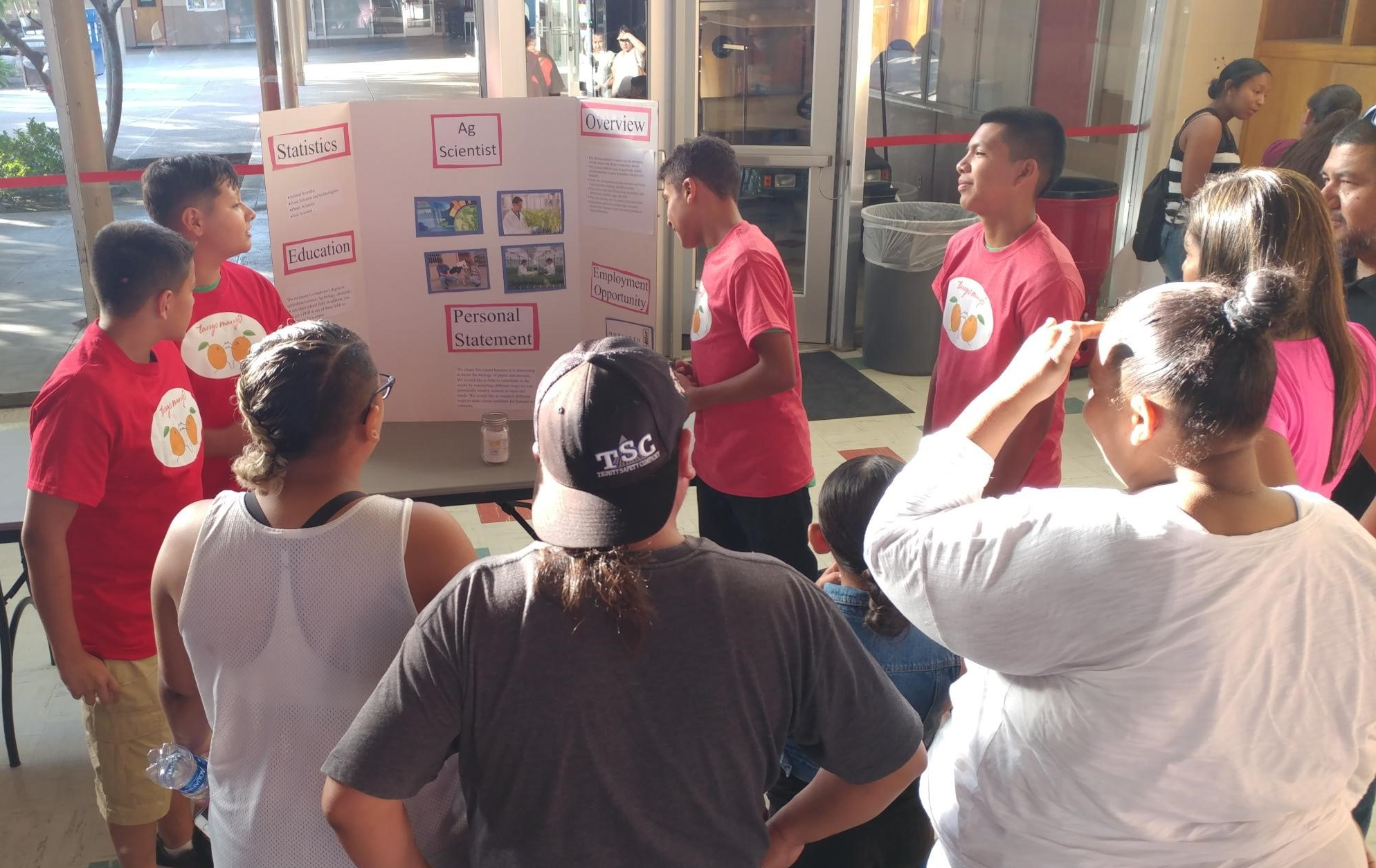 Students presenting career research project to family and friends