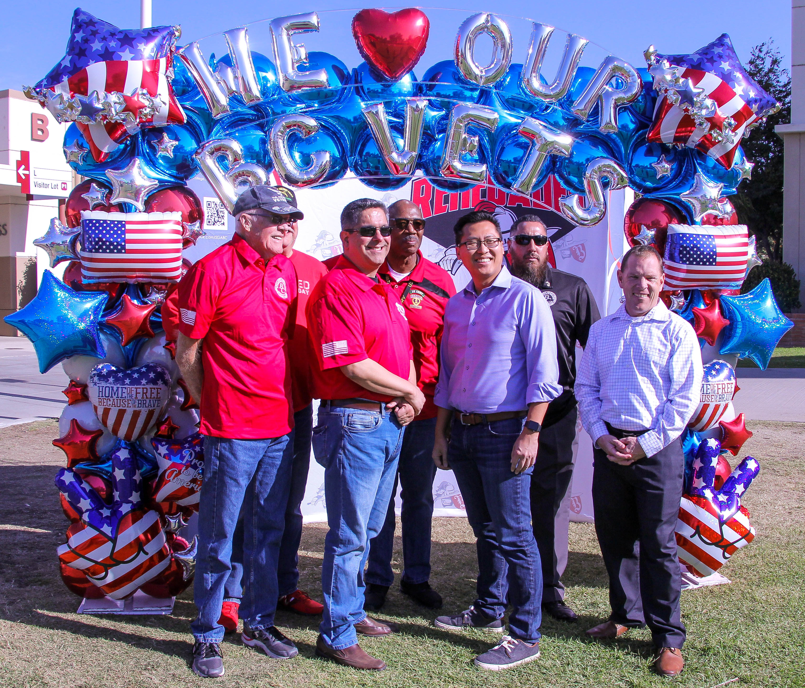 In the photo booth with balloons We heart our BC Vets.