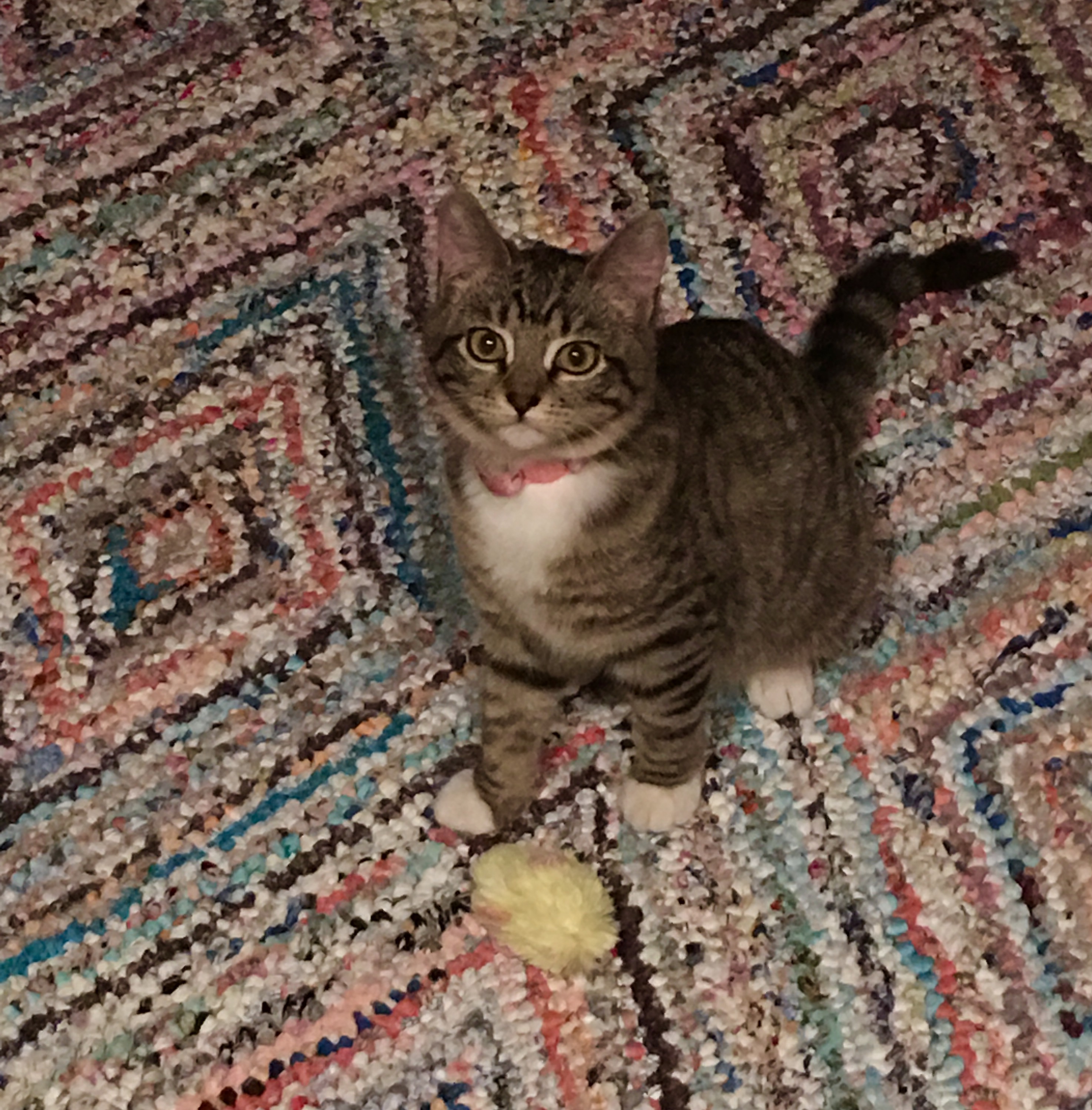 tabby and white kitten with toy